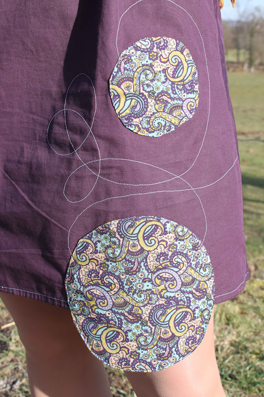 Un peu de gribouillage à la machine à coudre et des gros appliqués tout ronds...